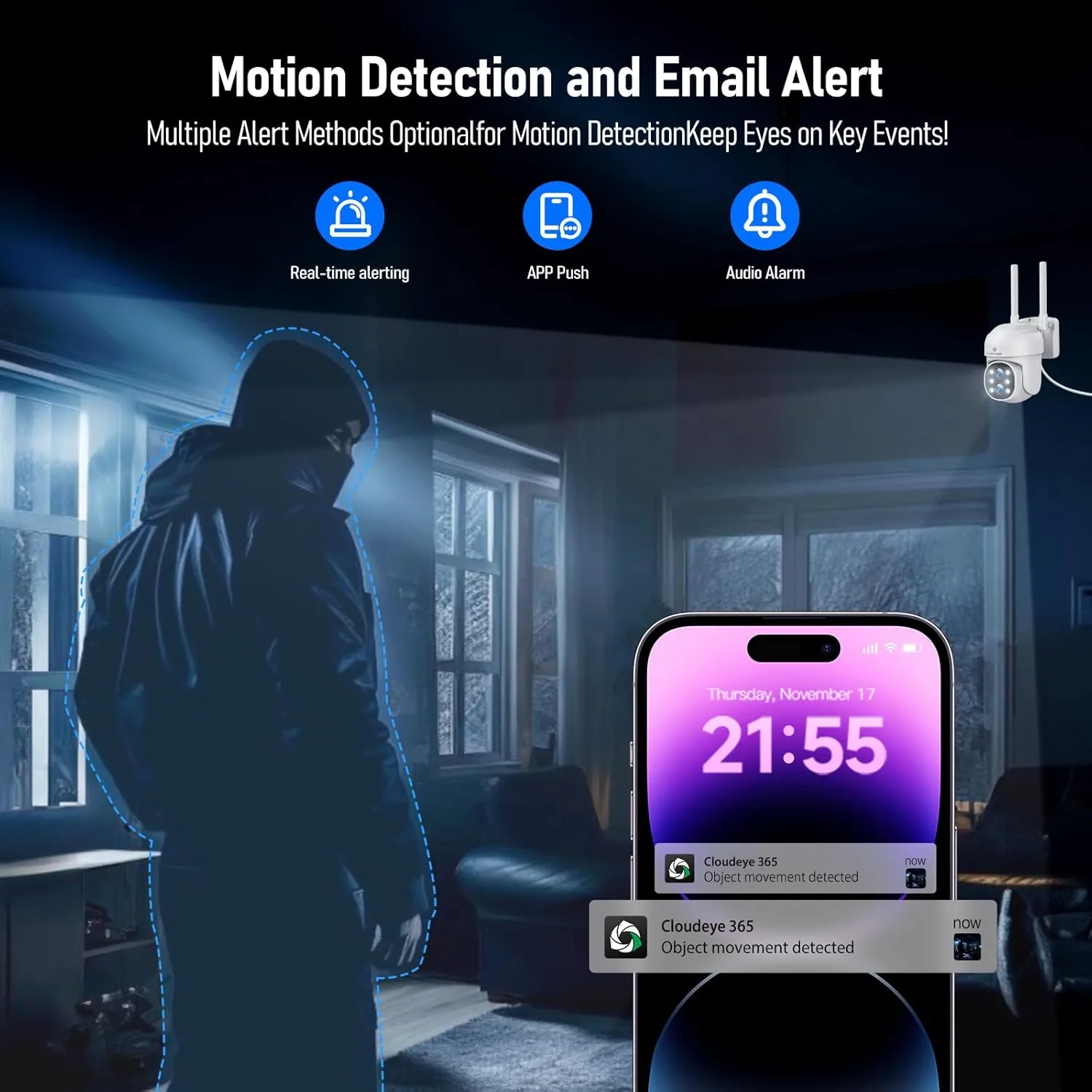 AI-powered motion detection. Instant mobile alerts. Crisp HD night vision.